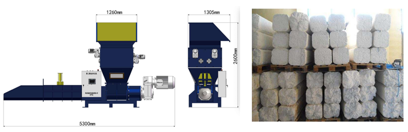 秦風(fēng)機(jī)械的EPS泡沫冷壓機(jī)就是用來(lái)解決這個(gè)問題的,它可以減少EPS泡沫塑料材料的大小,壓縮比可以達(dá)到1:30-1: 50。壓縮的成品是EPS泡沫塑料塊,其密度可達(dá)300kg/m3,很容易把EPS泡沫塑料材料處理成另一種回收處理形態(tài)。