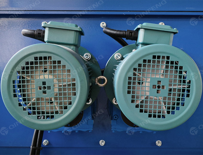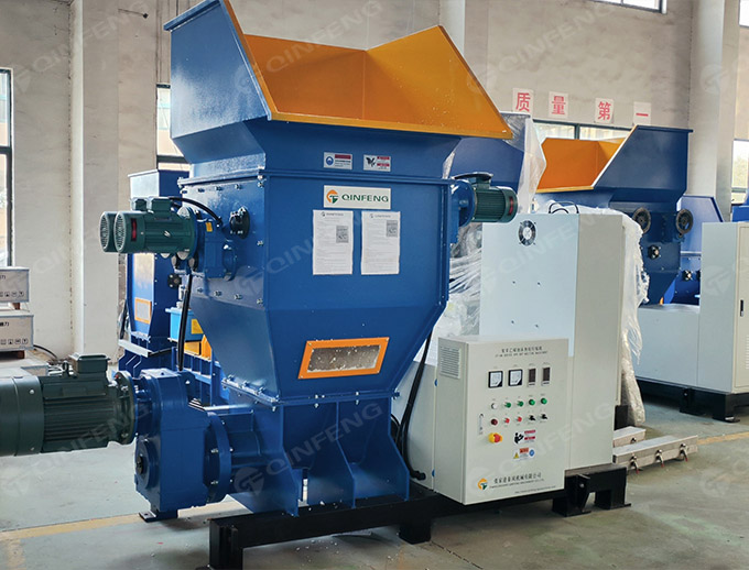 CF-NHM400型號的熱熔機采用四軸破碎刀片、雙排平行的刀片軸對稱地固定在刀片上,刀片在雙軸刀片軸上錯位排列,各軸上的刀片通過計算的方法均勻地布置在同一方向。每一軸上的第一個刀片和最后一個刀片都成90度角。當雙軸破碎刀片開始工作時,兩個平行的刀片軸以不同的旋轉方向進行旋轉,形成一個波浪的控制,這樣材料就可以恒定的速度向下移動,在經(jīng)過切割刀片的切割后,會變成更小的塊狀。EPS熱熔機里的四軸破碎刀片可以把EPS料變成更小體積的塊,然后通過濾網(wǎng)。這些不能通過濾網(wǎng)再次被破碎的料會最終通過濾網(wǎng)過濾掉。該材料將由高速旋轉螺桿推送到加熱筒。主機的螺桿可以輸送、加熱料,使其達到熱熔狀態(tài),然后擠出并通過模具冷卻得到規(guī)則型的方塊,更加便于貯存和運輸。